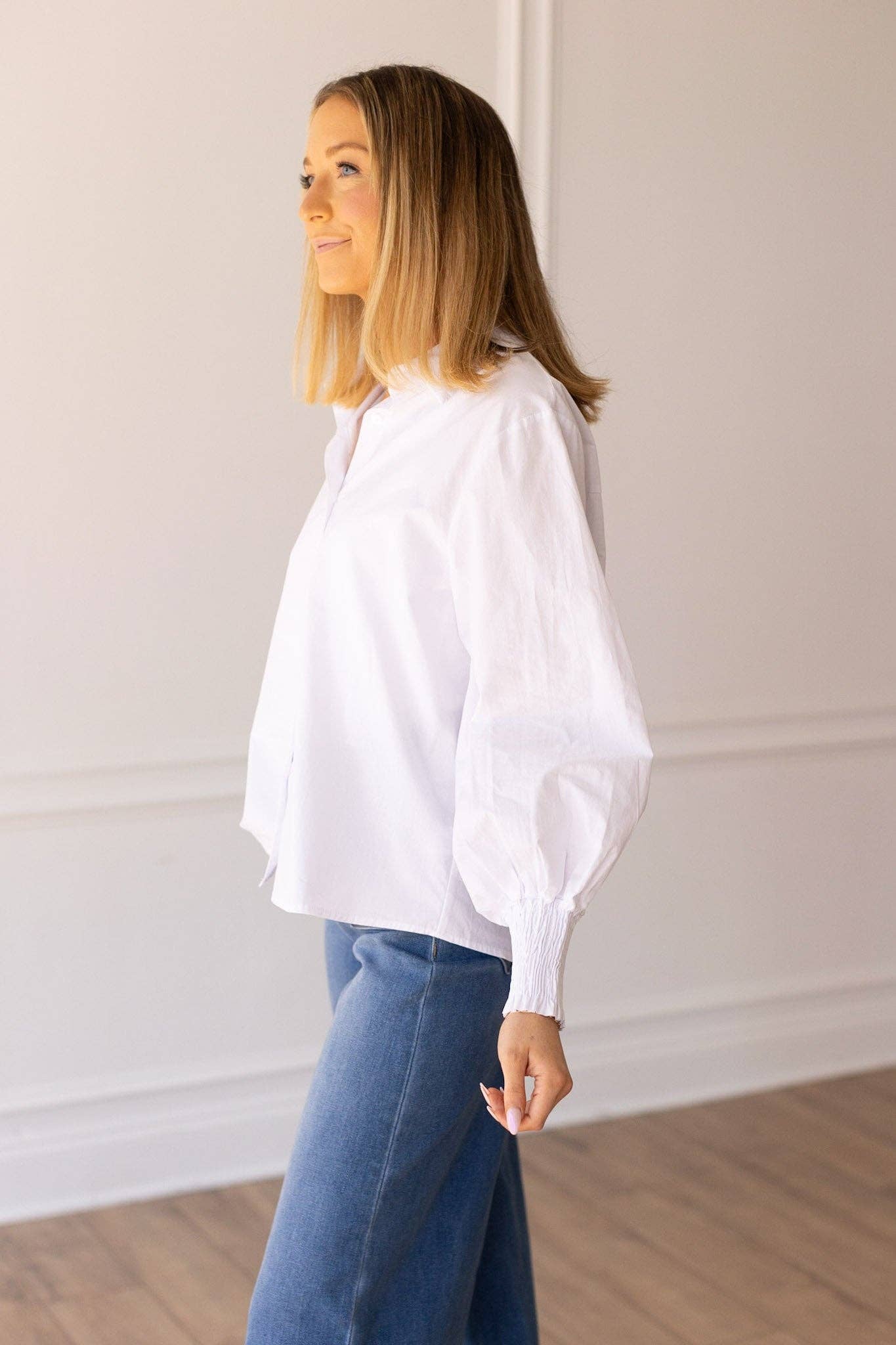 Retro Reverie Balloon-Sleeve Blouse in White: White / X-Large