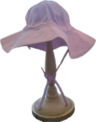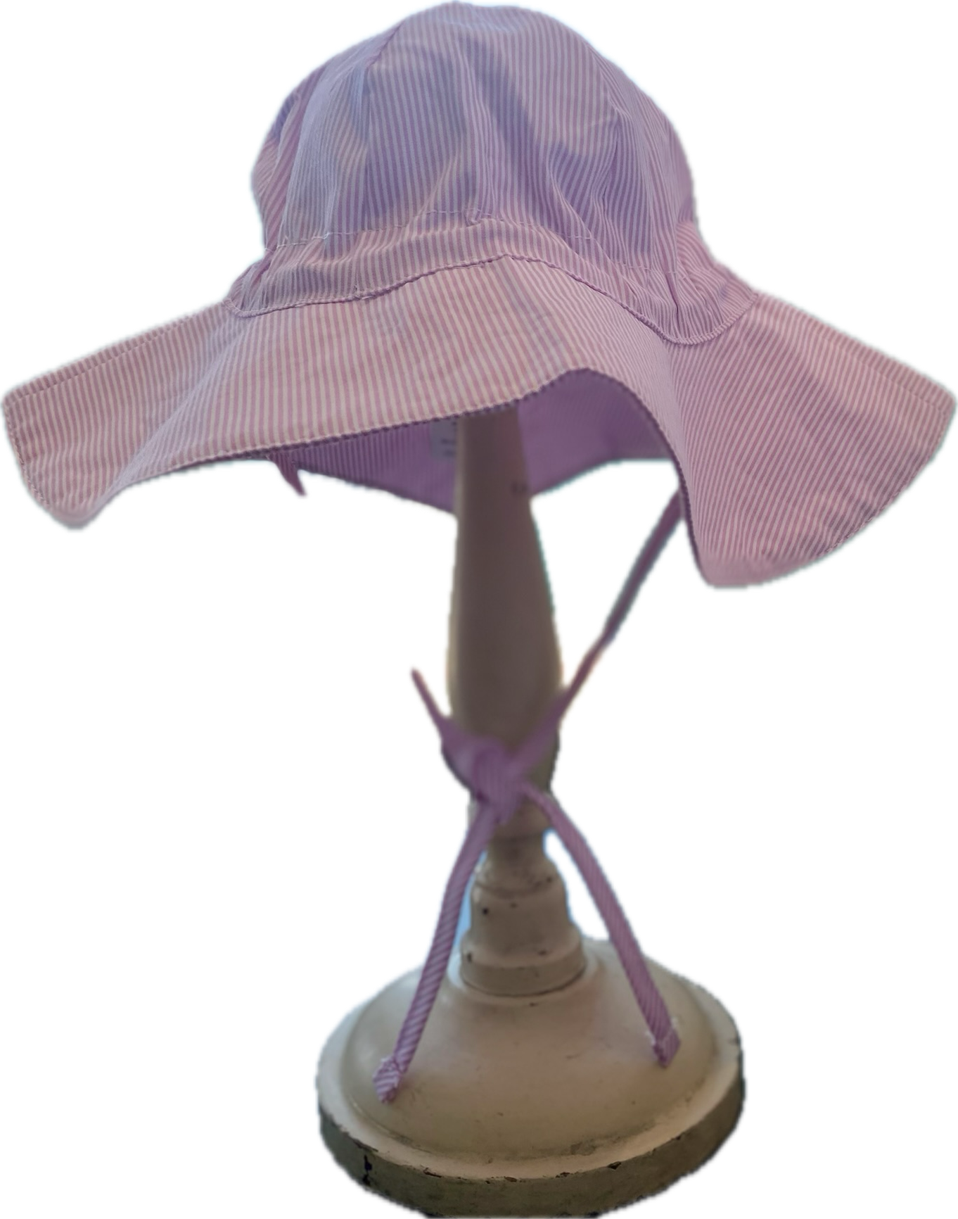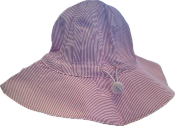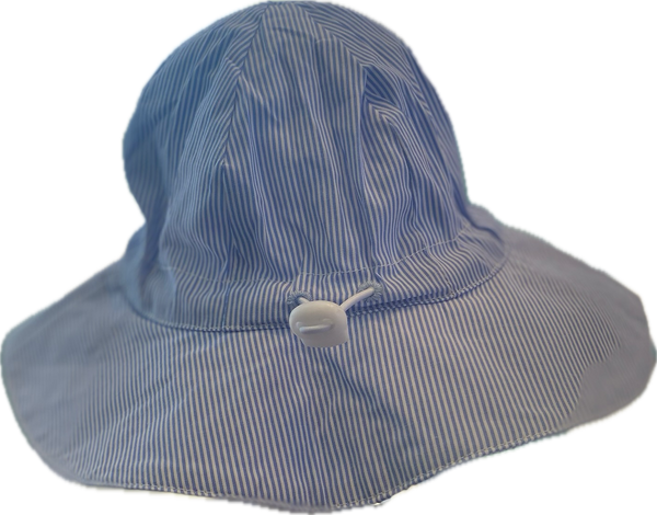 Available in soft pink or blue stripe, each hat is adjustable, and ties under the chin. Perfect for adding a personalized monogram.