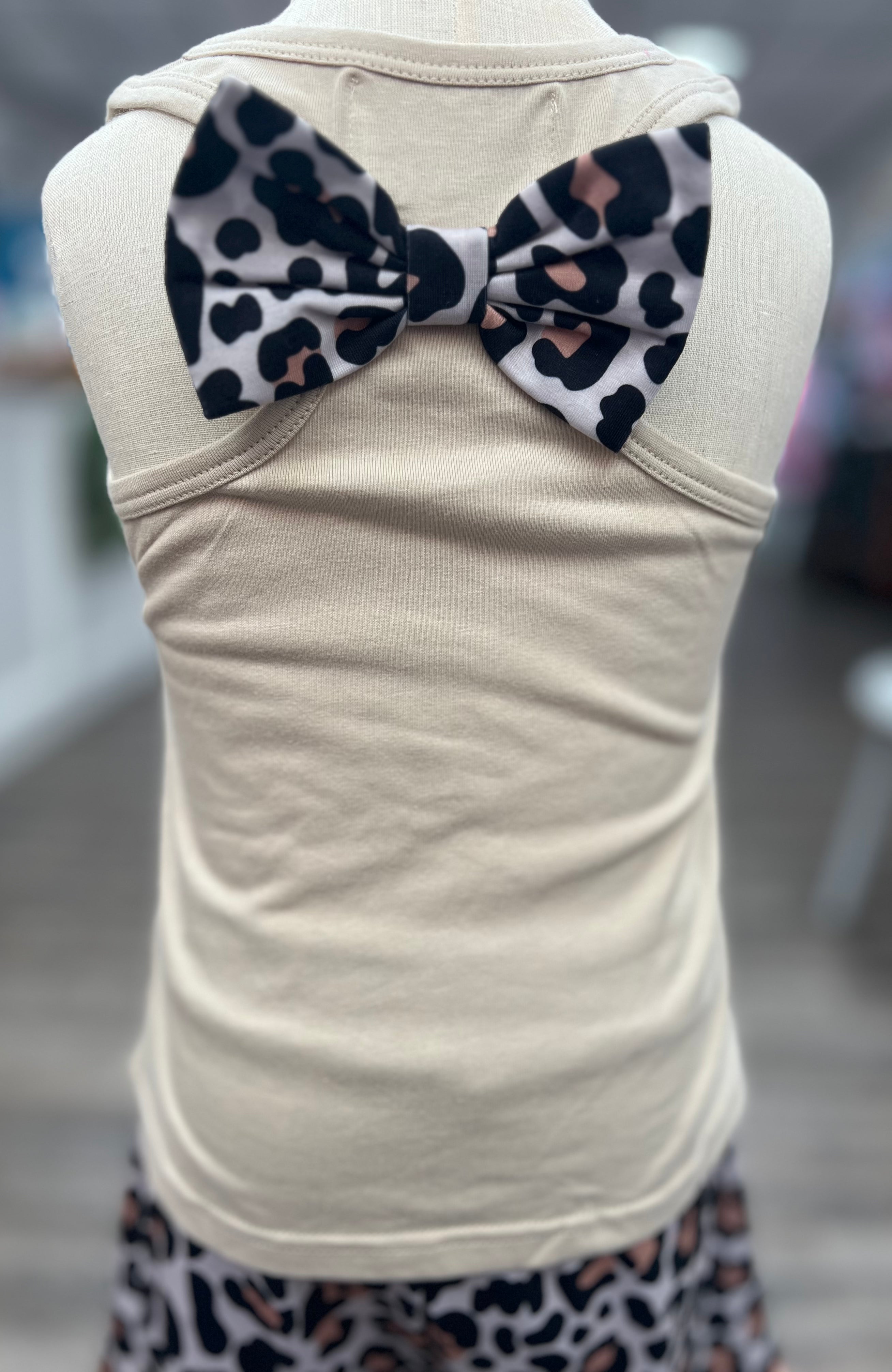 Let your little girl shine BOLD and BRIGHT in our WILD FOR JESUS short set. This adorable two-piece outfit features a soft beige razor back tank with a statement leopard-print bow applique' and matching ruffled trimmed shorts that are full of personality. It's the perfect blend of sass and sweetness, with a message that reminds us to stay wild in faith an fierce in the spirit. Comfy, cute, and perfect for everyday wear.